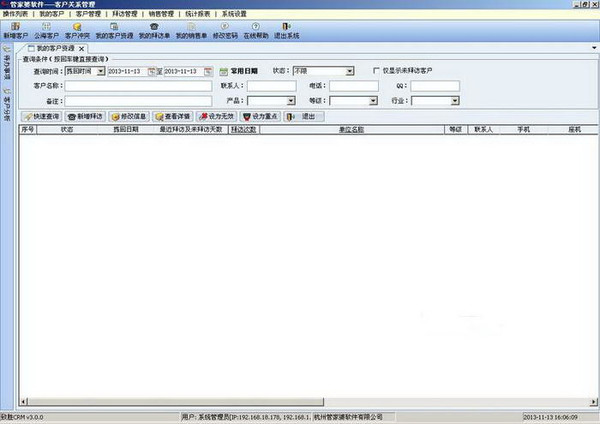 何为客户关系管理软件。客户管理主要包括客户档案管理、销售线索、销售活动、业务报告、统计销售业绩管理等,客户管理软件使用于一般的企业销售部门或者销售服务型的公司,能帮助企业销售部快速管理客户、管理销售业绩,以及业务拓展管理等重要数据。现在很多服务型的公司,特别是软件公司,这个客户量是非常庞大的,如果没有这款软件的协助,客户管理起来将会很难,长期这样会导致企业的客户不断流失,严重影响公司的销售业绩。